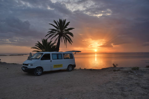 Po asi devíti hodinách jsme dorazili do tuniského přístavu. Zvládli všechny obstrukce spojené s vyloděním a hraničním přechodem. V pozdních hodinách jsme byli oficiálně vpuštěni do Afriky na území Tuniska. Vzali jsme to proti směru hodinových ručiček. Zamířili jsme na severní pobřeží, smočit unavená těla do průzračných mořských vod. Jednou z prvních zastávek byl Mys Angela, nejsevernější bod Tuniska a zároveň celé Afriky. Podívali jsme se za vodními buvoly do NP Ichkeul a navštívili město Tabarka, z jehož pevnosti se nám nabídli výhledy na město a pobřeží. Na chvíli jsme se ocitli zpět v Evropě díky architektuře ve vesnici Bani Matir a schovali se před nemilosrdnými slunečními paprsky ve stínu korkových dubů. Nekonečné olivové háje nás doprovázeli na cestě za historií do UNESCO archeologického naleziště Dougga a vystoupali jsme na proslulou Jogurthovu horu. Také jsme byli několikrát eskortováni, hledali ukryté nástěnné malby a ochutnávali dobroty místní kuchyně. Navštívili jsme město Tozeur a jeho okolí a viděli místa spojená s filmy Star Wars a Anglický pacient. Zapadli jsme v poušti a byli vysvobozeni místním Berberem, díky kterému jsme ochutnali čerstvý berberský chléb a projeli se na velbloudech.